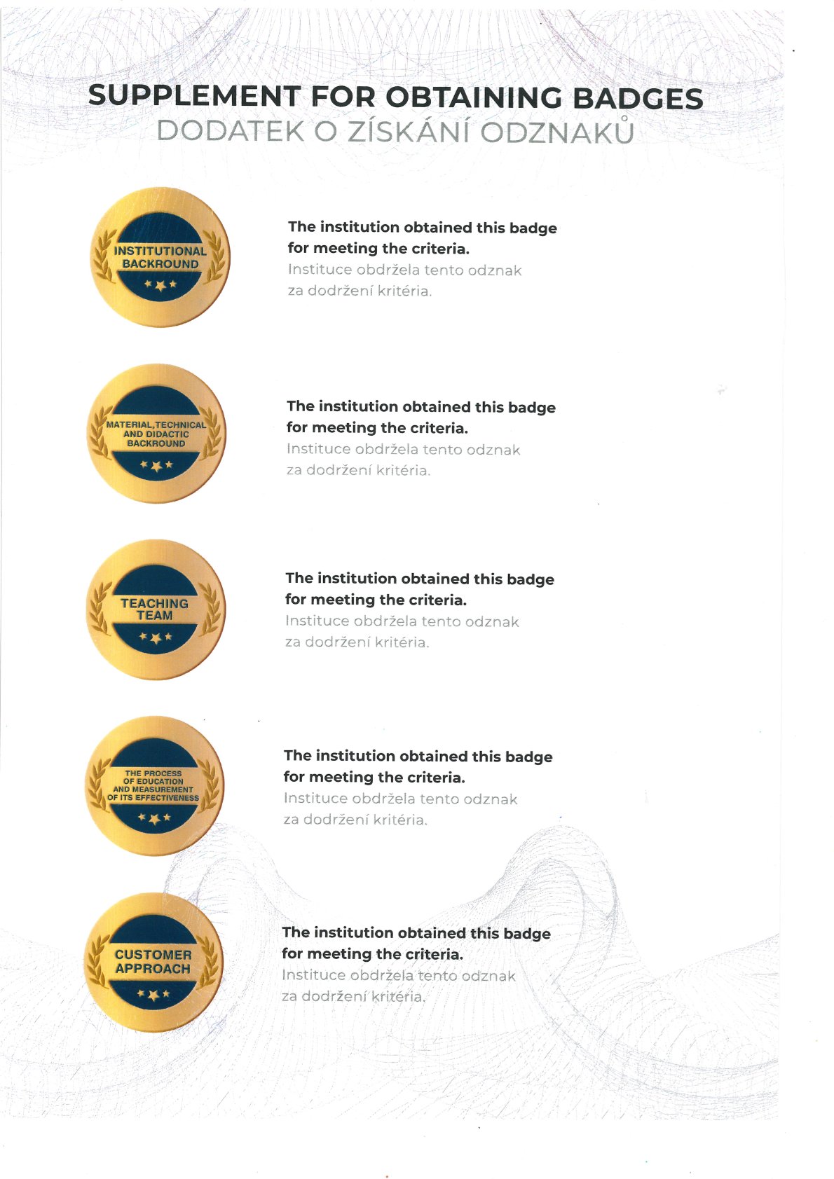 Naše škola získala certifikát na základě úspěšně vykonaného auditu hodnocení kvality podle mezinárodního standardu QualTrack. Hodnotily se tři základní pilíře: autoevaluace, externí hodnocení a vlastní rozvoj. Kromě toho jsme obdrželi všech pět odznaků nad rámec standardu v oblastech institucionálního zázemí, lektorského týmu, vzdělávacího procesu a jeho evaluace, didaktického zázemí a klientského přístupu.